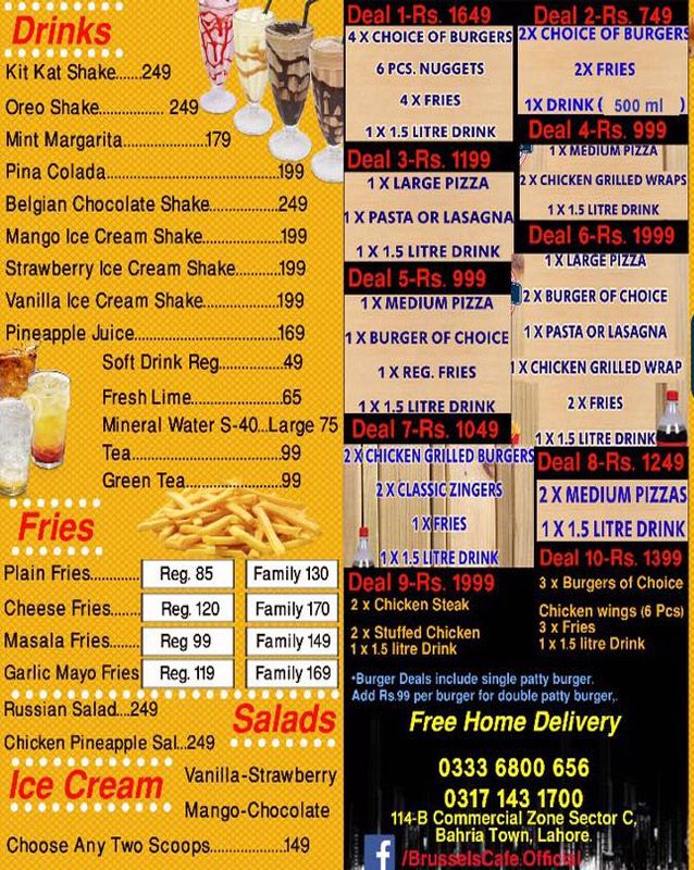 • Noor-ul-Amin Rd Lahore Branch Brussels Café & Grill, 639, Umer Block, Noor-ul-Amin Road, Karim Block Market, Allama Iqbal Town Lahore - Pakistan +923336800656