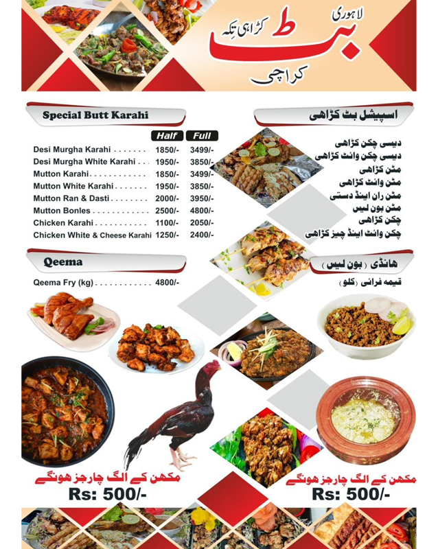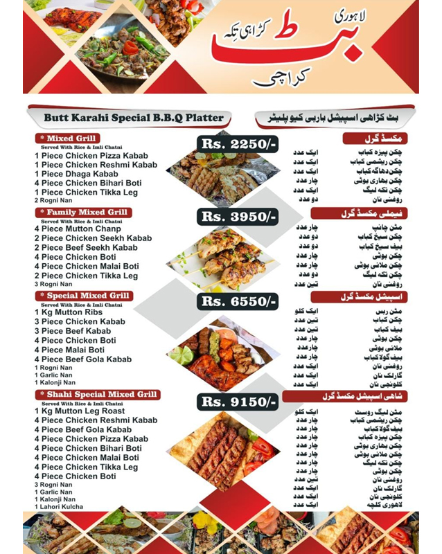• Gulshan-e-Jamal Karachi Branch Butt Karahi Tikka Karachi - Rashid Minhas Rd, (Railway Colony) Block D, Gulshan-e-Jamal, Karachi - Pakistan +922134603446, +923152172671
