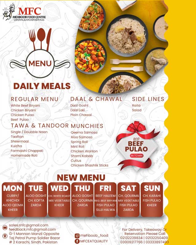 • Soldier Bazar Karachi Branch Mehboob Food Centre - G-1 Mannan Manzil Soldier Bazar Opposite Shell Petrol Pump 2, Karachi - Pakistan +922132250409, +923333897493, +922132239834