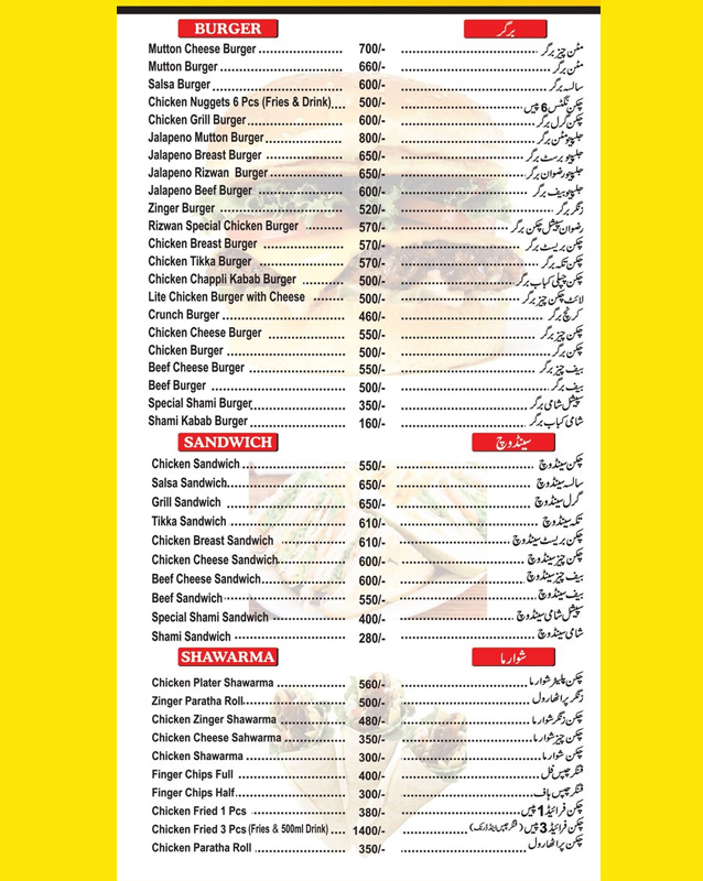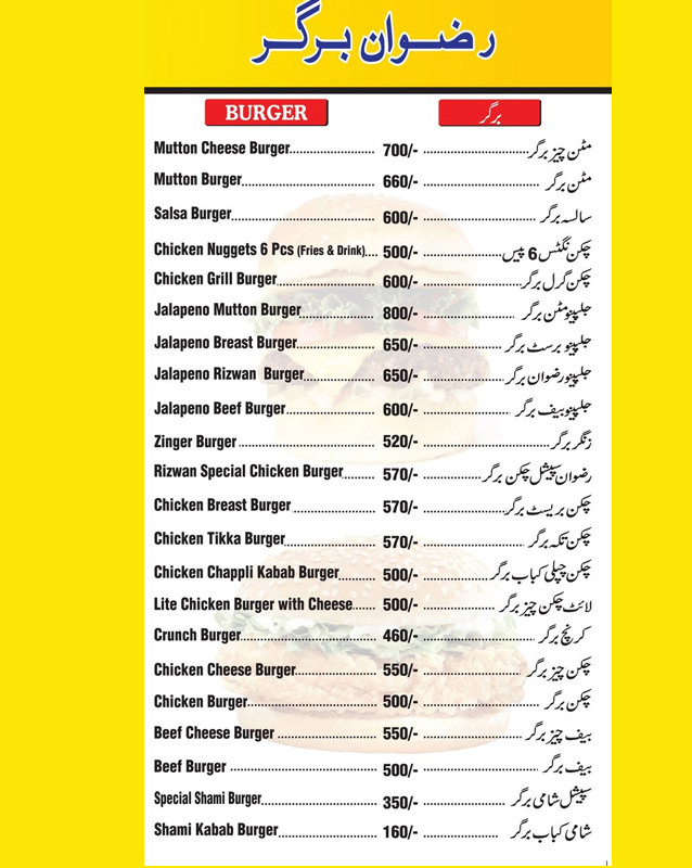 • Main Bazar Canal Park Lahore Branch Rizwan Burger, Masjid Main Market, Main Bazar Canal Park, Main Market, Lahore - Pakistan +924235752218
