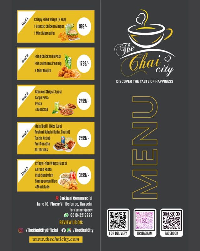 • Gulistan-e-Johar Karachi Branch The Chai City - Plot # A, 40 Johar-Mousamiyat Road, adjacent to 786 Motors, Saadabad Society Block 5, Gulistan-e-Johar, Karachi - Pakistan +923103219222