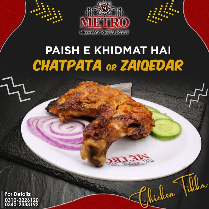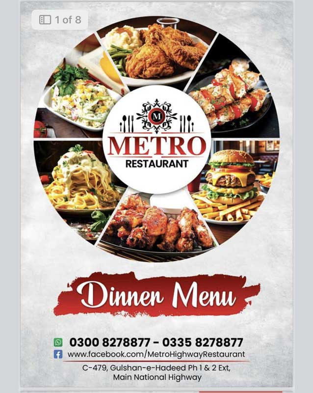 • Gulshan-e-Hadeed Karachi Branch Metro Highway Restaurant - C-479 Ext, Gulshan e Hadeed Phase 3 Bin Qasim Town, Karachi - Pakistan +923008278877, +923358278877