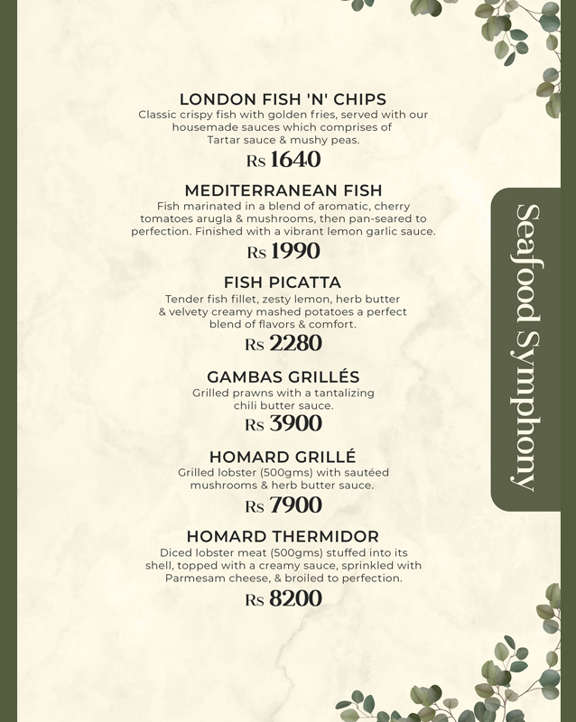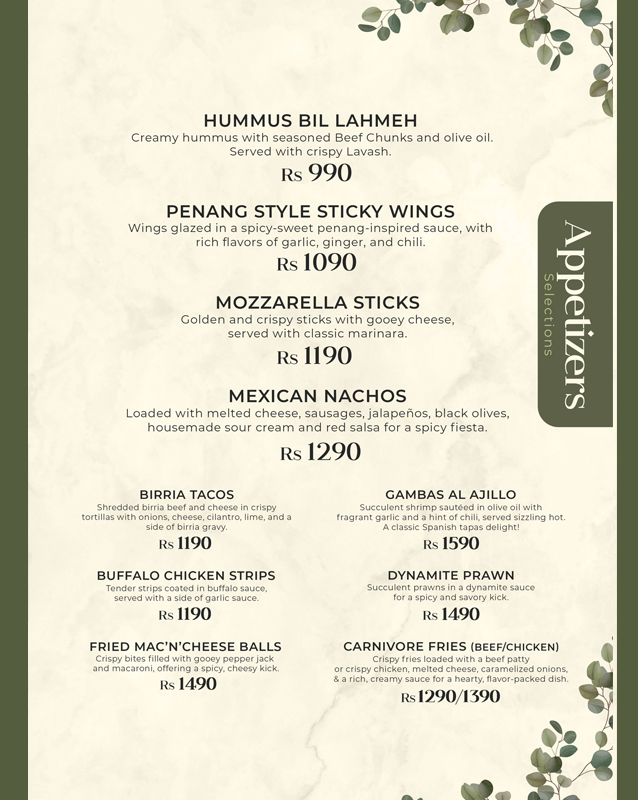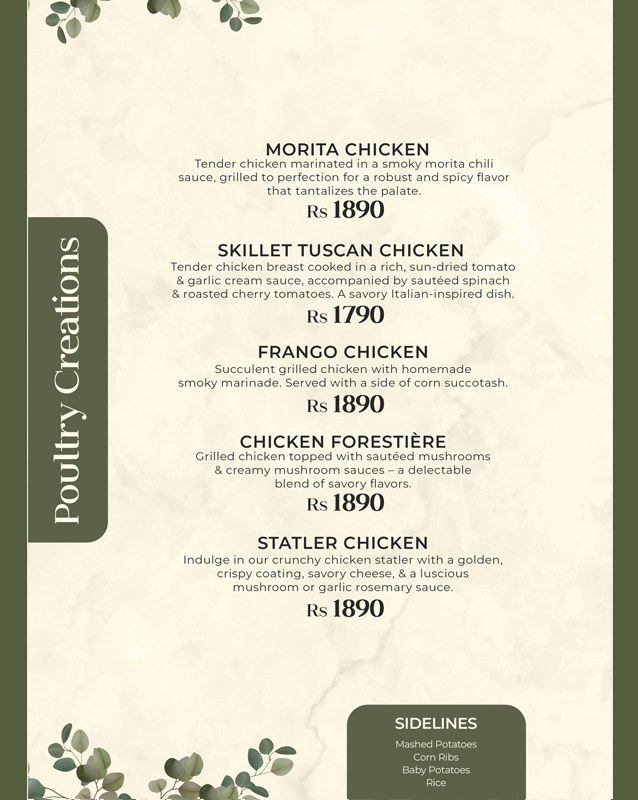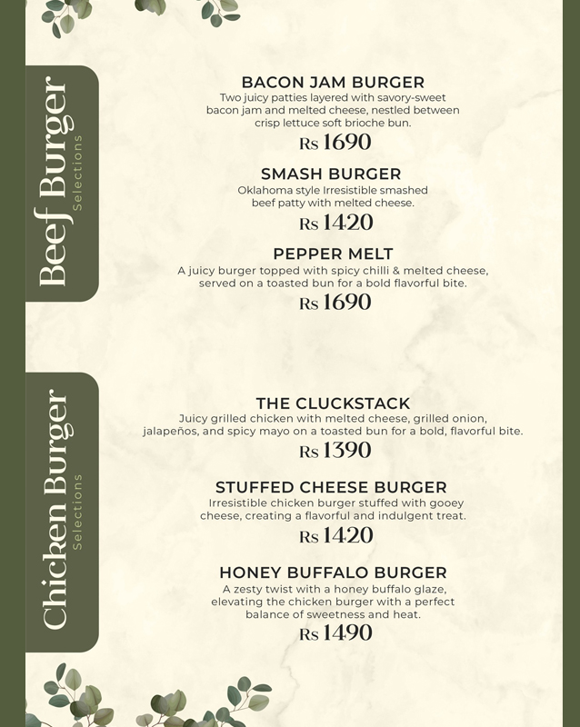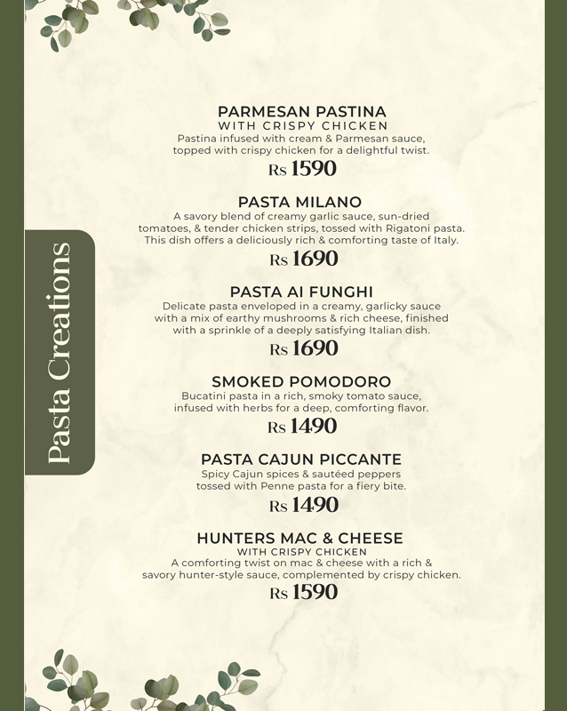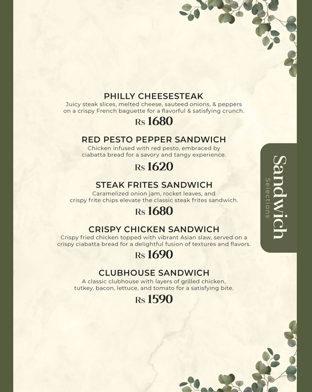 Type: Pasta, Sandwiches, Steaks, Beverages